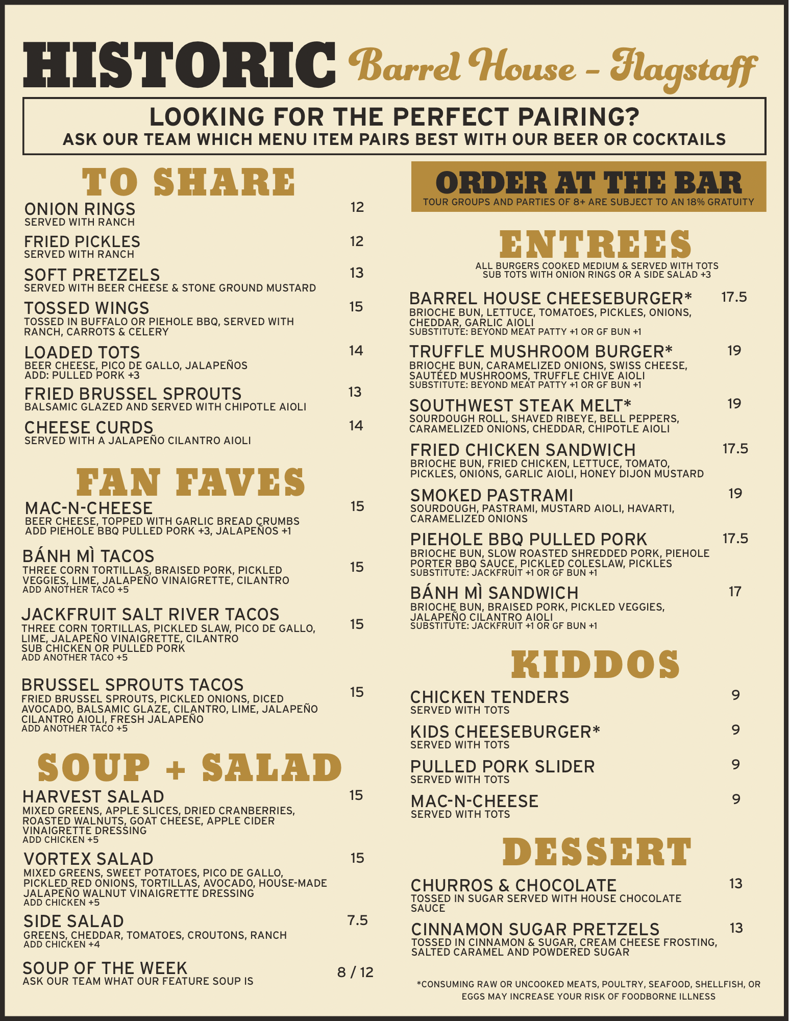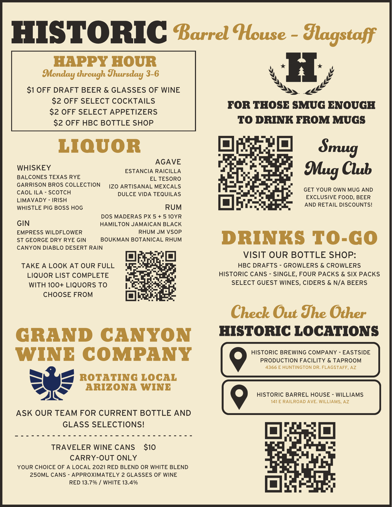 Historic's - Downtown Flagstaff location is where the party is! Two concepts under one roof! Enjoy a beer in the taproom and or watch our bartenders create your beautiful hand-crafted cocktail in our Lounge. Our menu is full of delicious choices including gluten free, vegan and vegetarian options! Enjoy your meal on our outdoor, dog-friendly patio or indoors while you watch the game on our large TV’s!